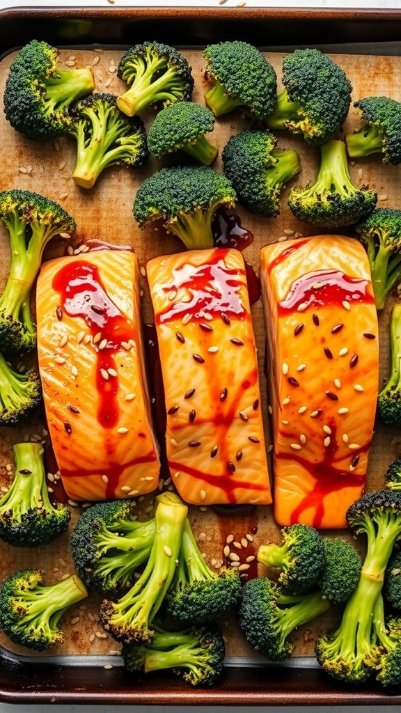- Sprinkle sesame seeds over the salmon and broccoli before serving.